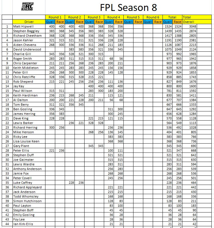 A guide to the point scoring for FPL 8 - Sheffield RC Racing