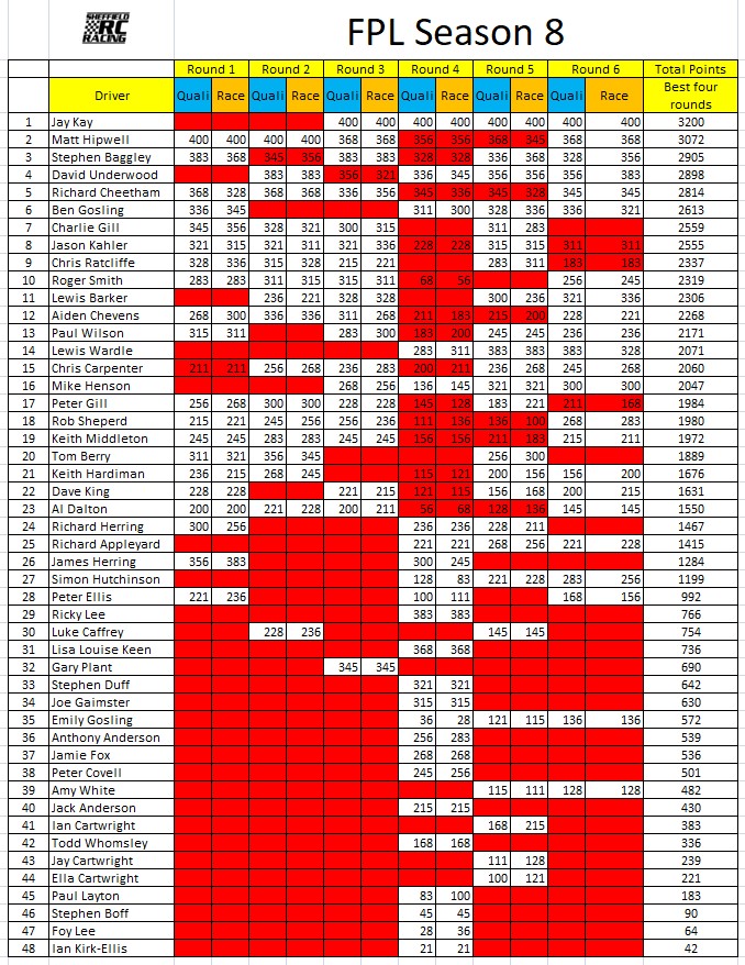 Sheffield RC Racing FPL 8 Team Results